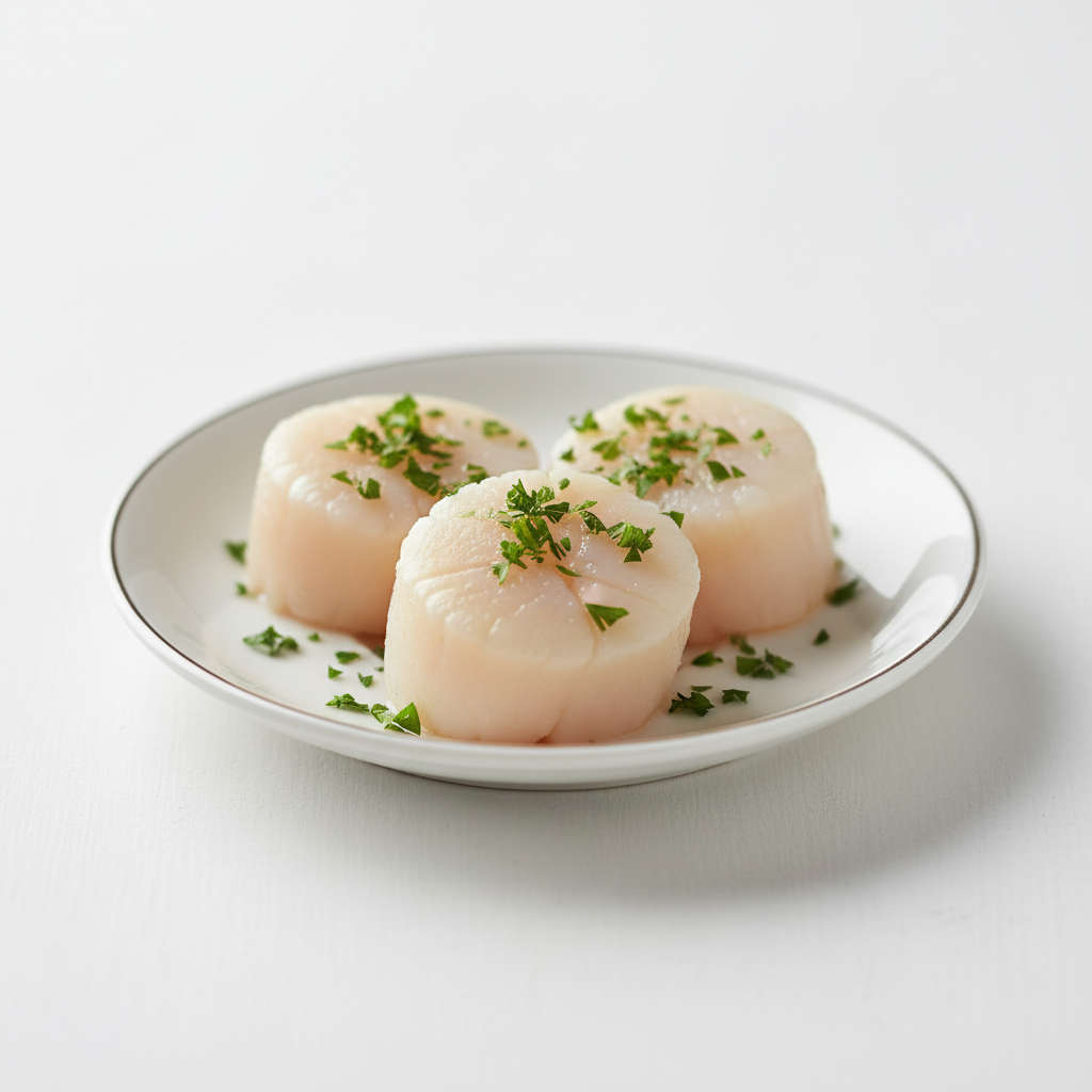 - 3-4 bay scallops or 1 large sea scallop