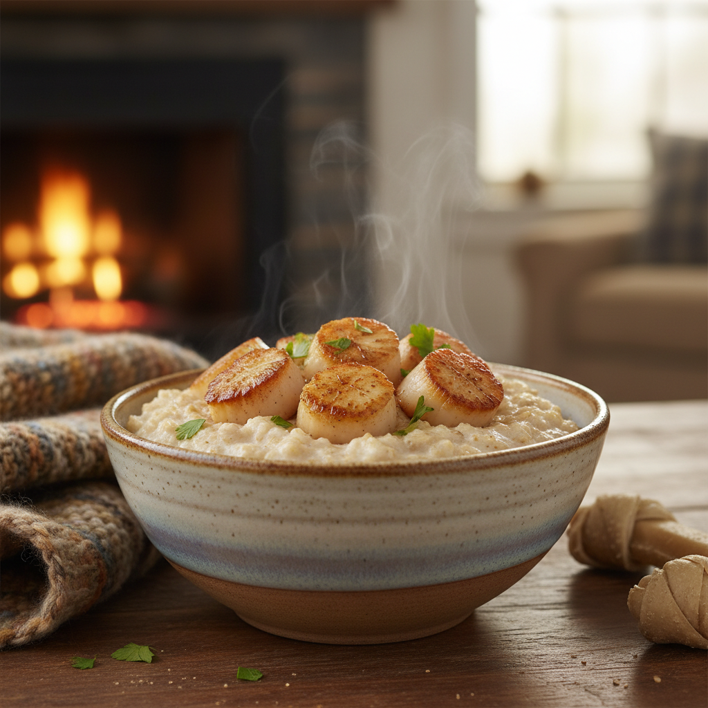 Oatmeal is a great source of soluble fiber, which can be beneficial for digestion. Mixing it with scallops creates a warm, comforting, and easy-to-digest meal.
