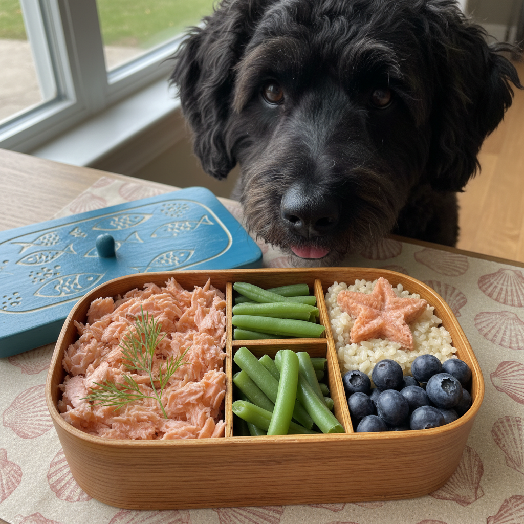 Ahoy, matey! This bento box is for the dog who loves the taste of the ocean. Packed with fishy goodness, it’s a fantastic source of omega-3 fatty acids, which are essential for a healthy coat, skin, and brain function.
