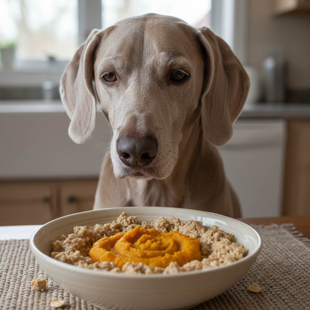 A must-try for any Weimaraner, but especially beneficial for those with dry skin, a dull coat, or age-related joint stiffness. It’s a beauty-boosting meal from the inside out.