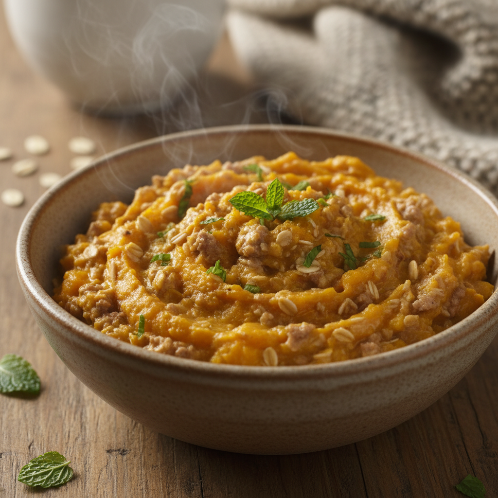 - Combine the goat, oats, and butternut squash puree in a bowl.