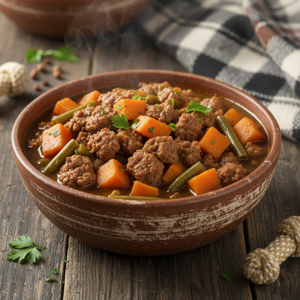 | Hearty Beef & Veggie Stew | Ground Beef | Active Dogs | 45 mins |