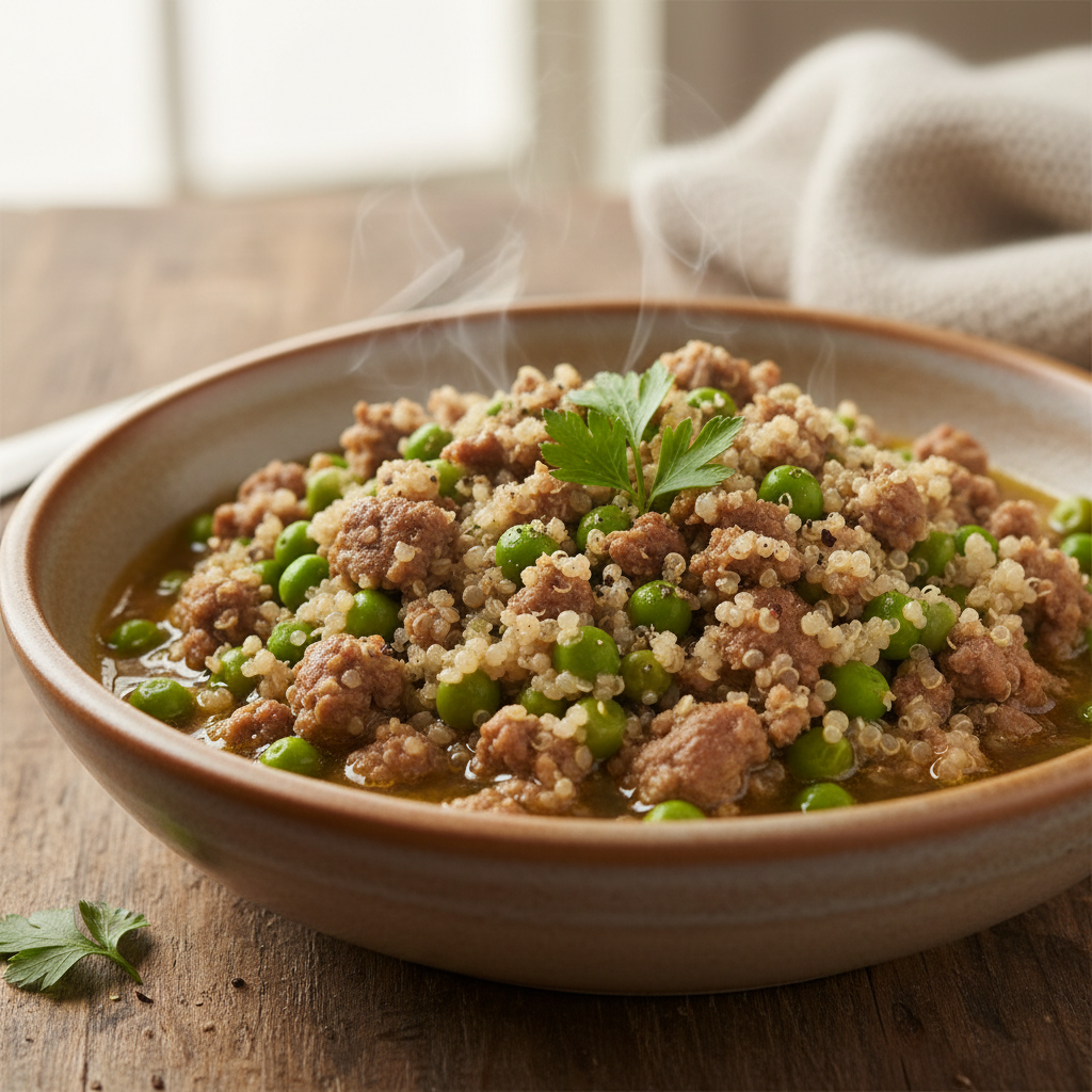 - In a bowl, combine the lamb and pea mixture with the cooked quinoa or rice.