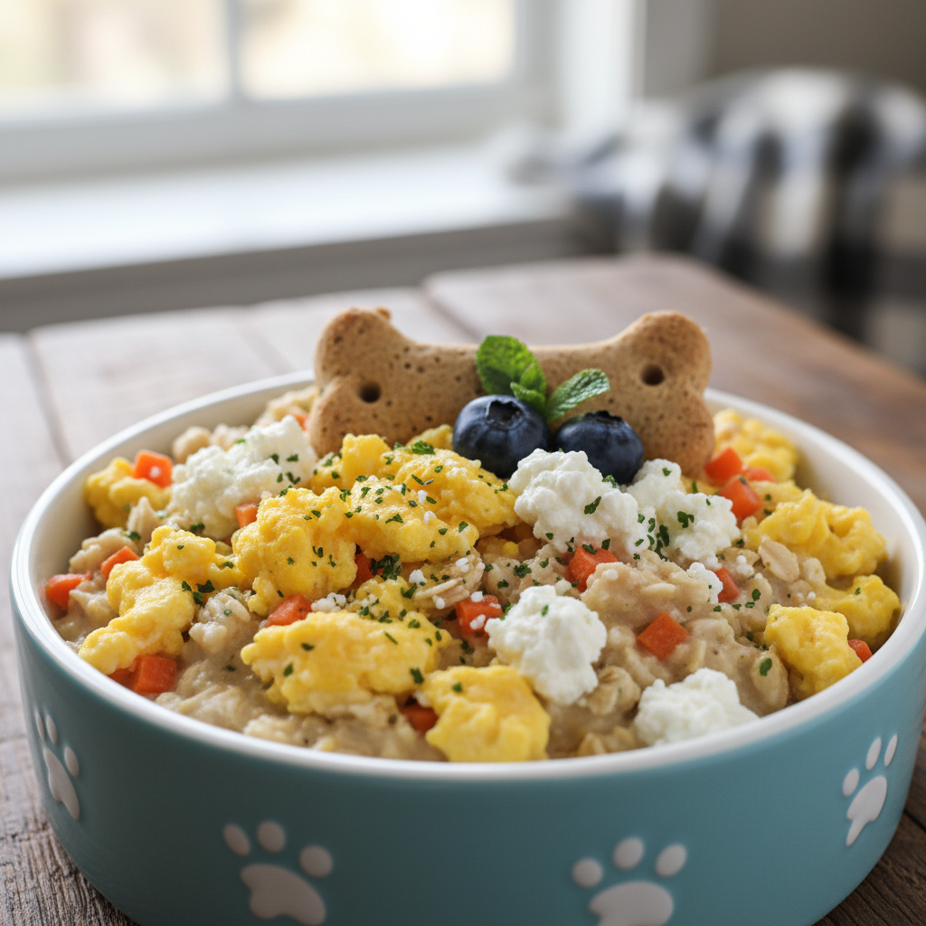Who says homemade meals are just for dinner? This breakfast scramble is a fantastic way to start your dog’s day with a boost of protein and calcium. It’s quick, easy, and a nice treat from their usual fare.