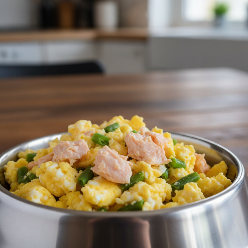 This recipe is a treat for your Basset’s joints. Salmon is loaded with Omega-3 fatty acids, which have powerful anti-inflammatory properties. This is especially beneficial for Basset Hounds, as excess weight puts extra stress on their joints and spine. We pair it with fiber-rich green beans and protein-packed eggs for a complete meal.