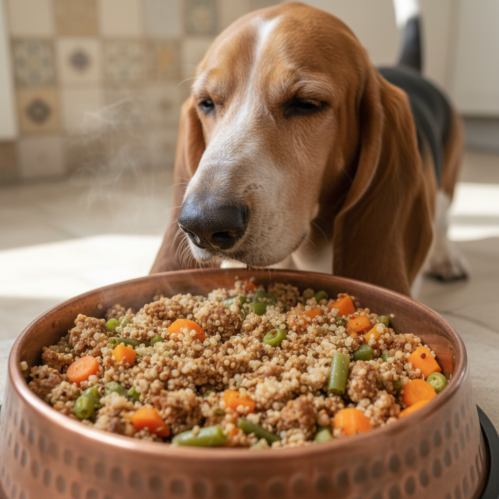Perfect for Basset Hounds who need a simple, high-protein, low-fat meal to kickstart their weight loss. It’s a well-rounded and satisfying dish that’s easy to digest for most dogs.