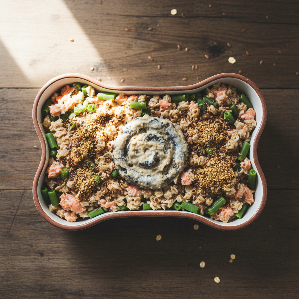 While salmon is already the king of omegas, this recipe takes it to the next level. With the addition of flaxseed and sardines, this bowl is a powerhouse of omega-3 and omega-6 fatty acids, perfect for promoting brain health, reducing inflammation, and creating the shiniest coat on the block.