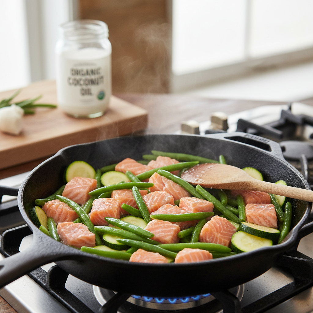 | Coconut Oil Salmon Sauté | Shiny Coats | Healthy fats | 20 minutes |