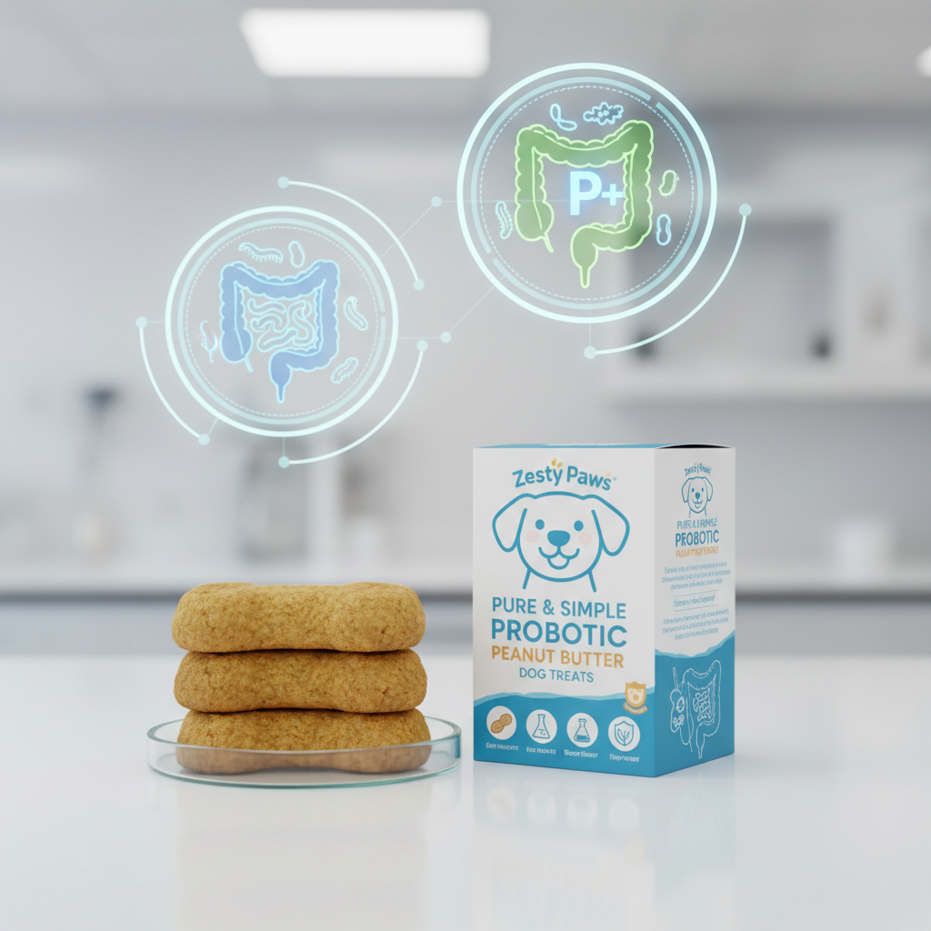 Zesty Paws Pure & Simple Cookies are the smartest cookie on the block. They are the perfect choice for owners who want to proactively support their dog’s digestive health while still giving them a delicious, daily treat.
