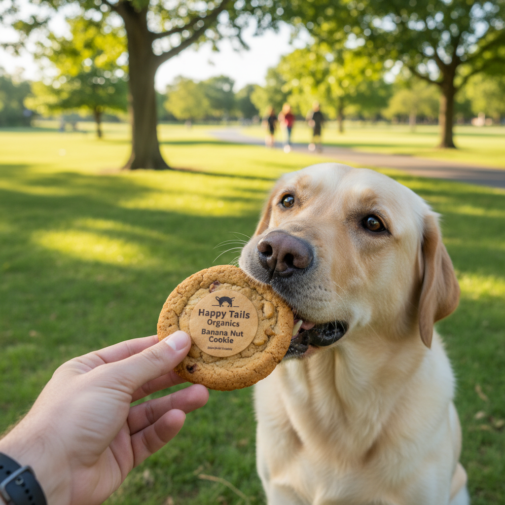Happy Tails Organics is another fantastic choice for the discerning pet parent. Their focus is on creating a cookie that tastes homemade because, well, it almost is. They are baked in a certified organic kitchen and use a very simple recipe: organic almond butter, organic banana, organic coconut flour, and organic eggs. The use of whole eggs adds a protein punch and helps bind the cookies into a classic, round shape with a slightly crumbly, buttery texture.