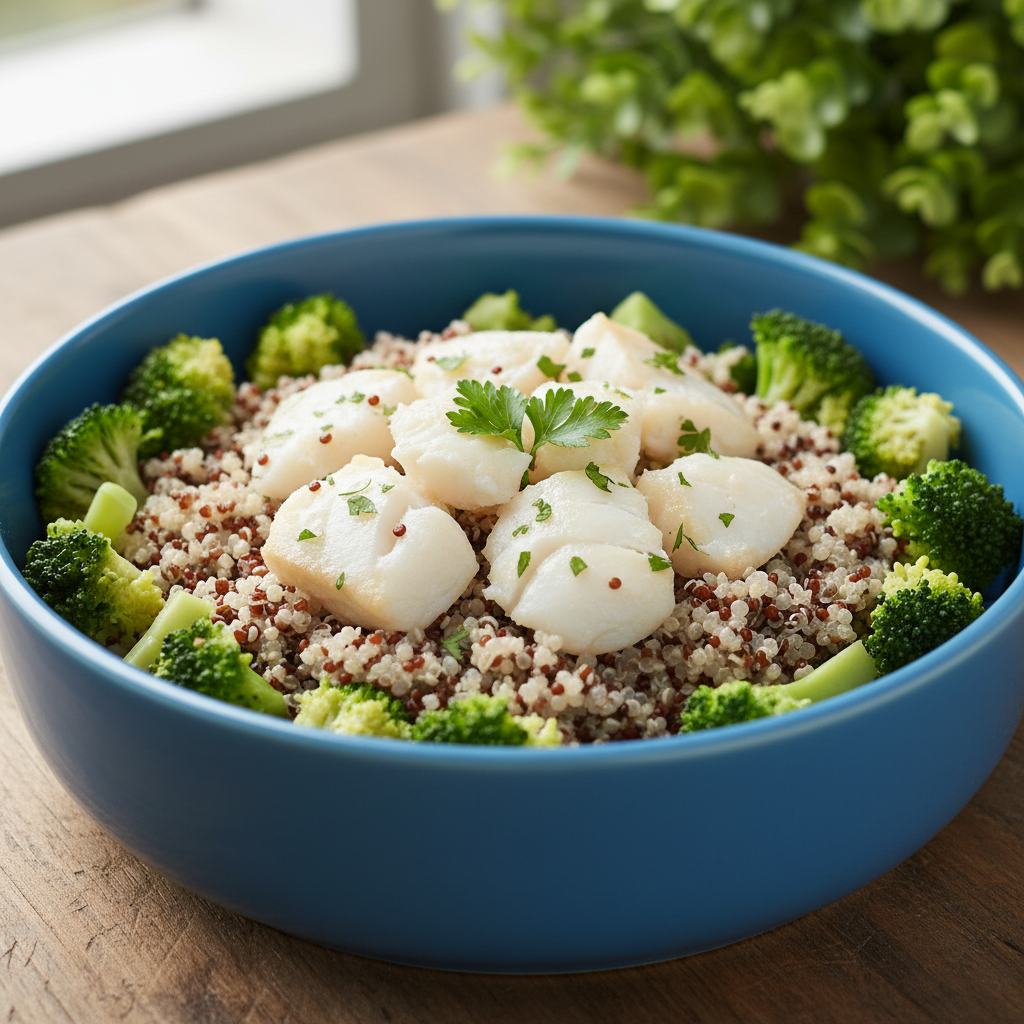 Boost your dog’s health with a dose of omega-3 fatty acids! This recipe uses fish like salmon or cod, which are great for skin and coat health, and pairs it with quinoa, a complete protein and high-fiber seed. The addition of broccoli adds even more fiber and a nice crunch.