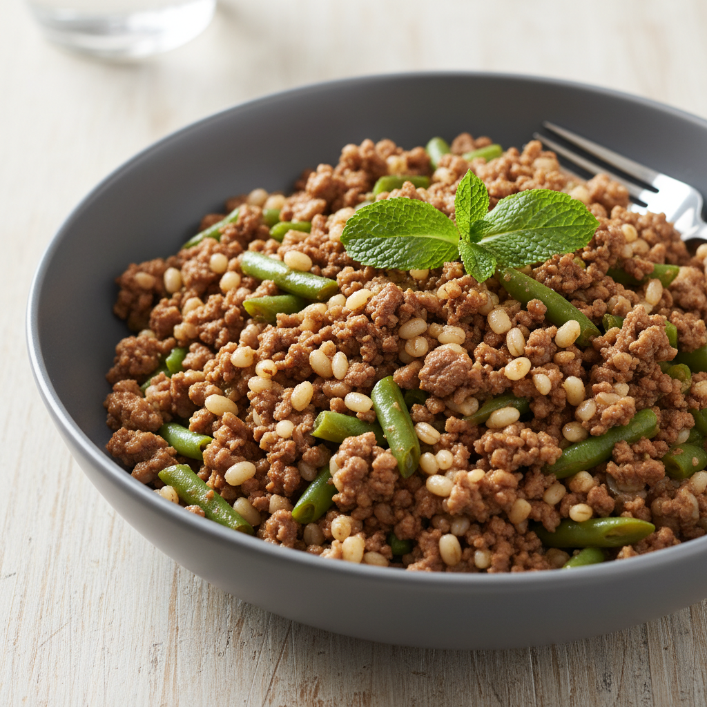 For the red meat lovers, this recipe combines the classic appeal of beef with the stool-bulking power of brown rice and peas. Beef provides essential amino acids and iron, while the combination of rice and peas offers a great mix of soluble and insoluble fiber to keep things moving smoothly.