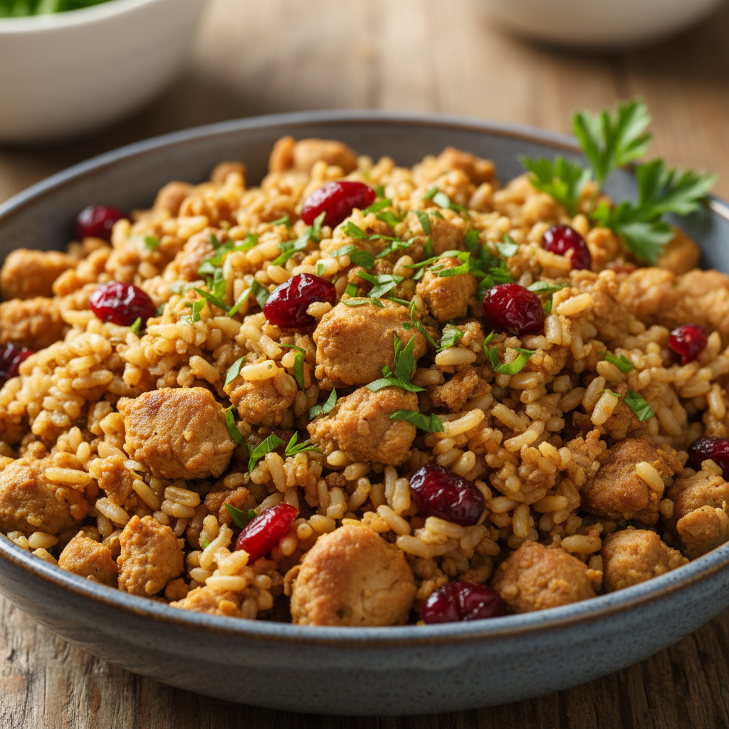 3. In a bowl, combine the cooked turkey, brown rice, cranberries (dried or cooked), celery, and parsley.