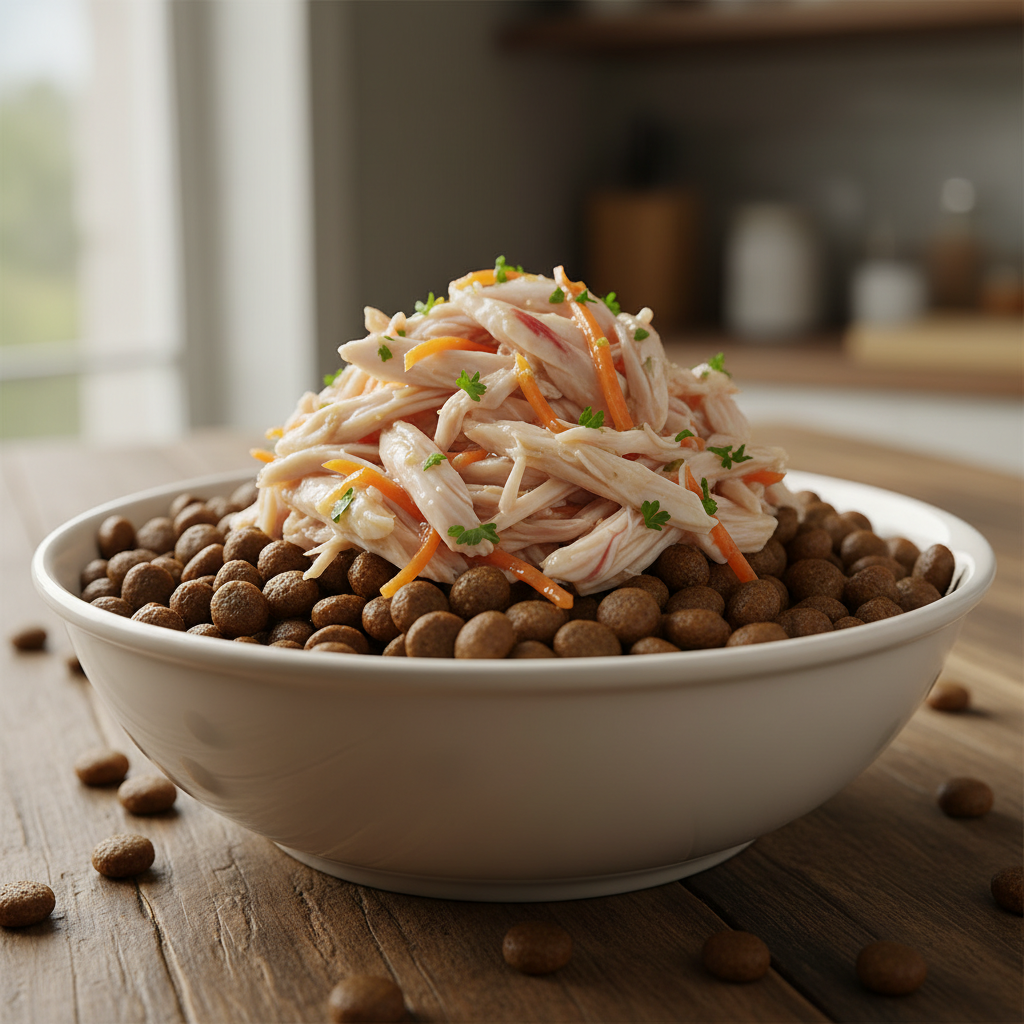 Not ready to commit to a full homemade diet? No problem! This simple topper is the perfect way to add a boost of fresh, whole-food nutrition to your dog’s existing kibble. It’s a great way to entice a picky eater or add extra protein and moisture to their diet.