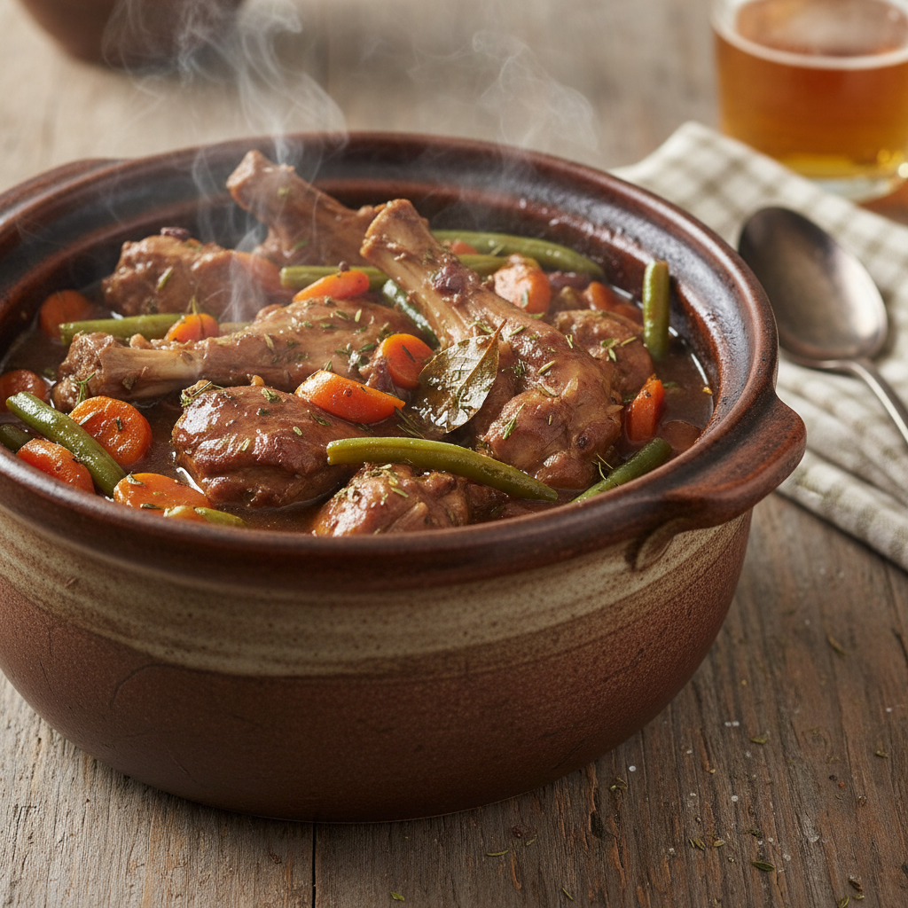 3. Cover and let it simmer for 40-45 minutes, until the rabbit is very tender and the carrots are soft.