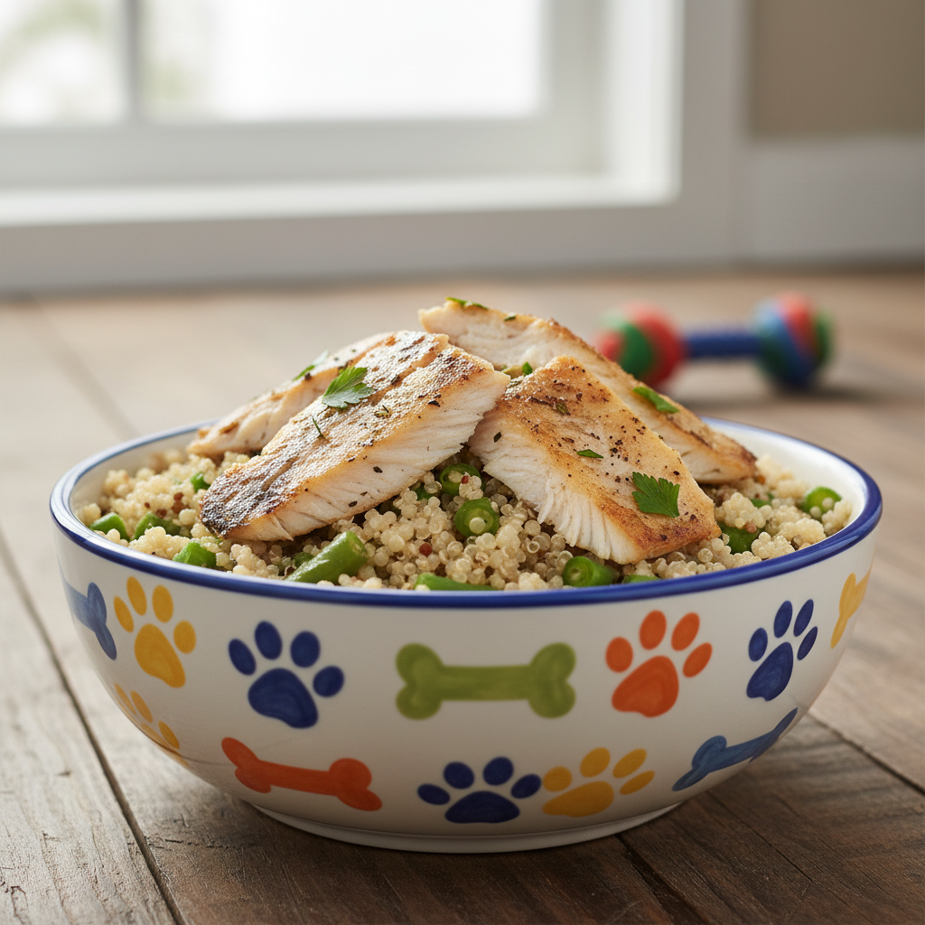 Looking for a gluten-free grain alternative? Quinoa is a complete protein and a great source of energy. Combined with the snap of fresh green beans and lean tilapia, this recipe is a balanced and textured meal your dog will love.