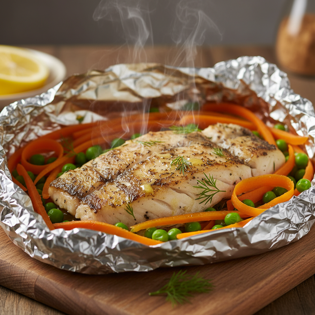 A classic combination that never fails! Baking the ingredients together in a foil packet seals in the moisture and flavor, creating a tender, aromatic meal. Carrots provide beta-carotene, and peas offer a nice boost of plant-based protein.