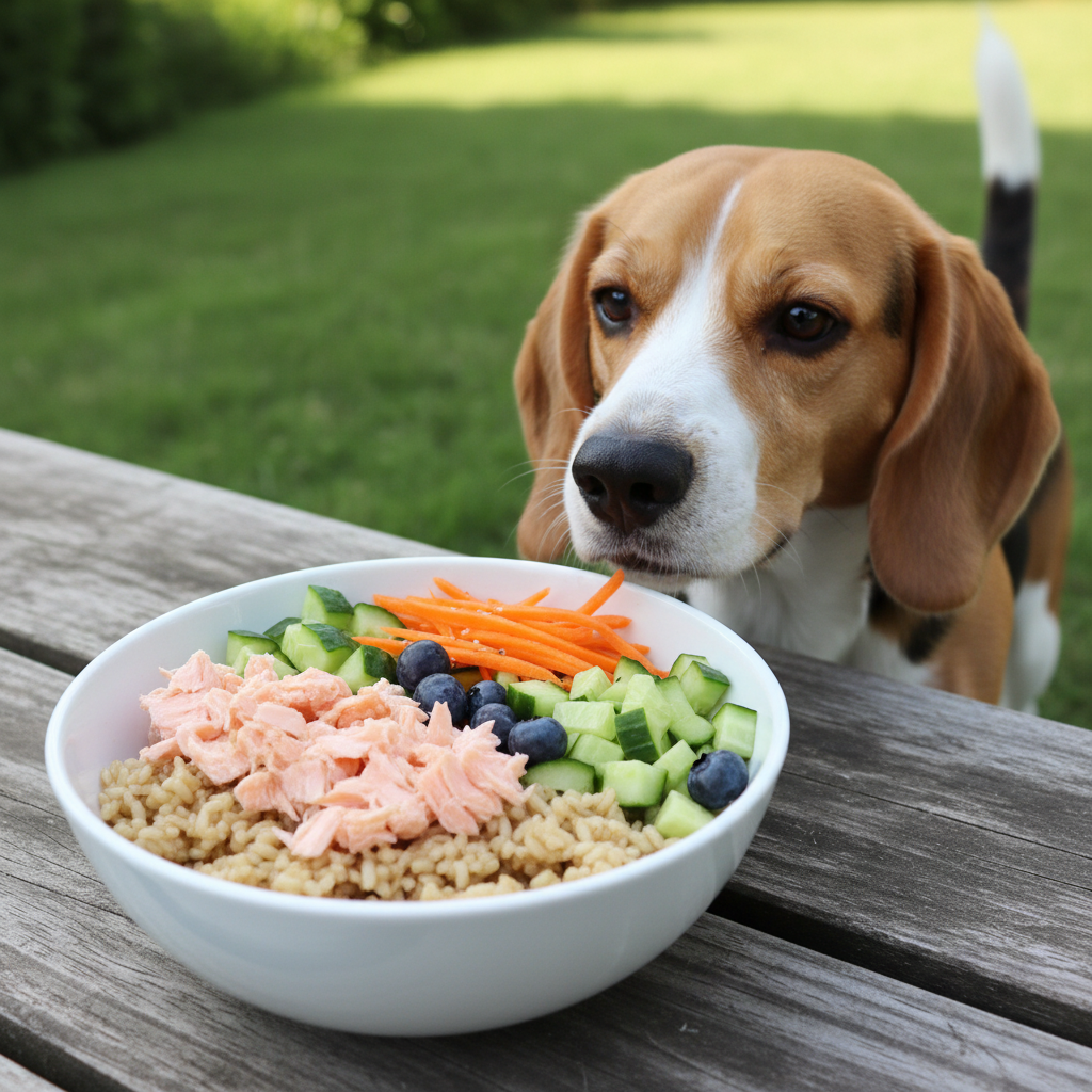 Don’t worry, we’re not talking about raw fish or spicy sauces. A dog-friendly poke bowl is a deconstructed meal made with fully cooked proteins, dog-safe grains, and a vibrant mix of nutrient-packed fruits and veggies. It’s a fantastic way to add variety, hydration, and a boost of vitamins to your dog’s diet. Ready to become your dog’s personal chef? Let’s dive into some tail-waggingly good recipes!