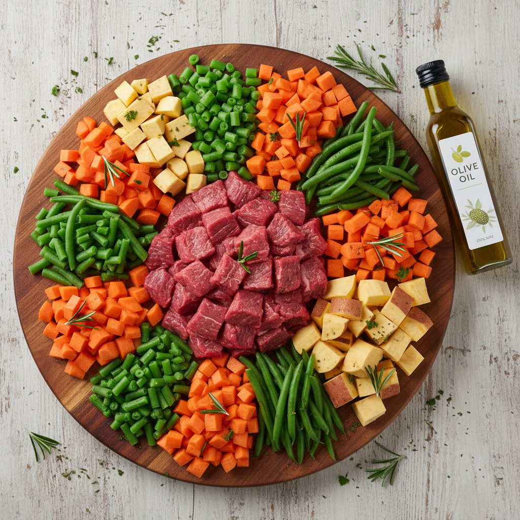 This recipe is a nod to the traditional, hearty stews that keep us warm. Using beef chuck for tenderness and pearled barley for fiber, it’s a wholesome meal perfect for an active dog who needs sustained energy.