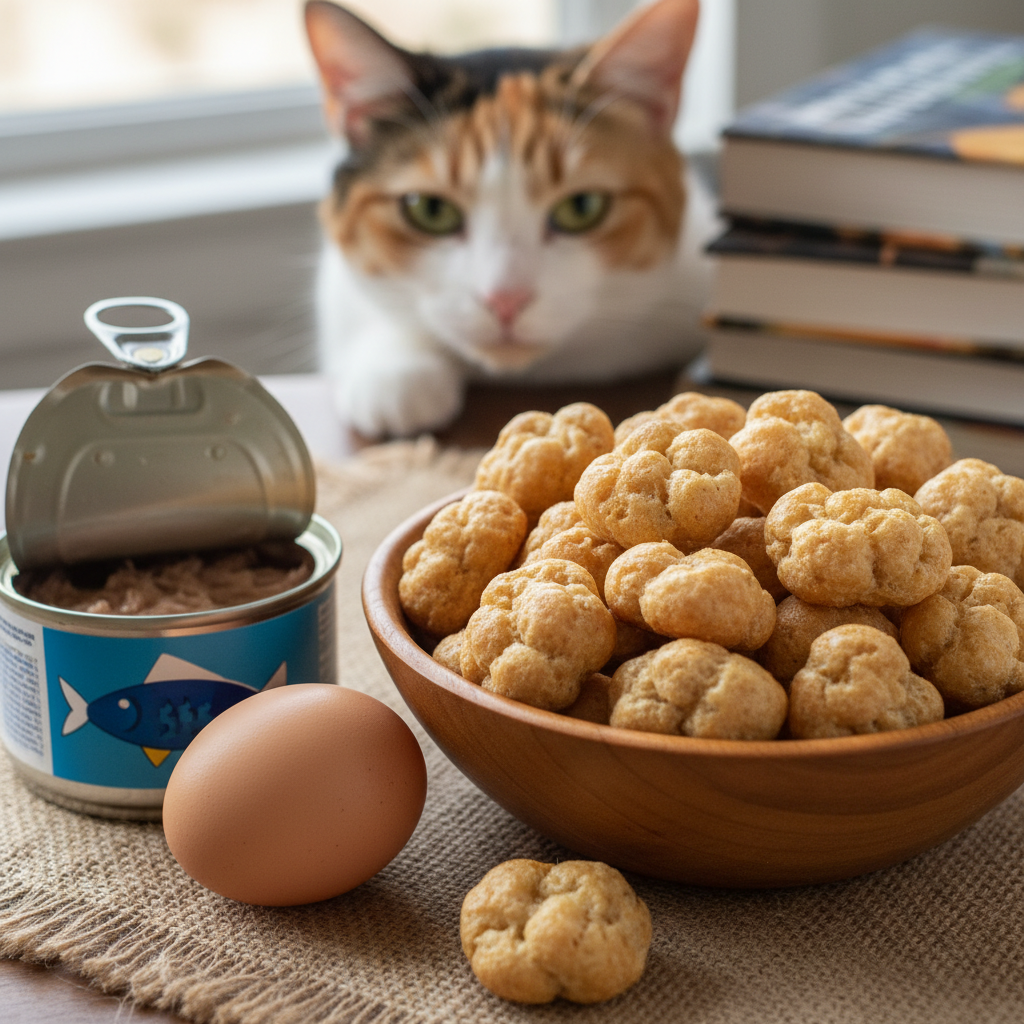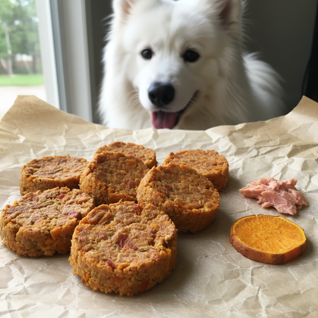 Another one for the fish lovers! Canned tuna is a pantry staple that can be transformed into a grain-free, protein-rich treat. Coconut flour keeps it light and suitable for dogs with sensitivities. They’re puffy, light, and oh-so-stinky (in a good way!).