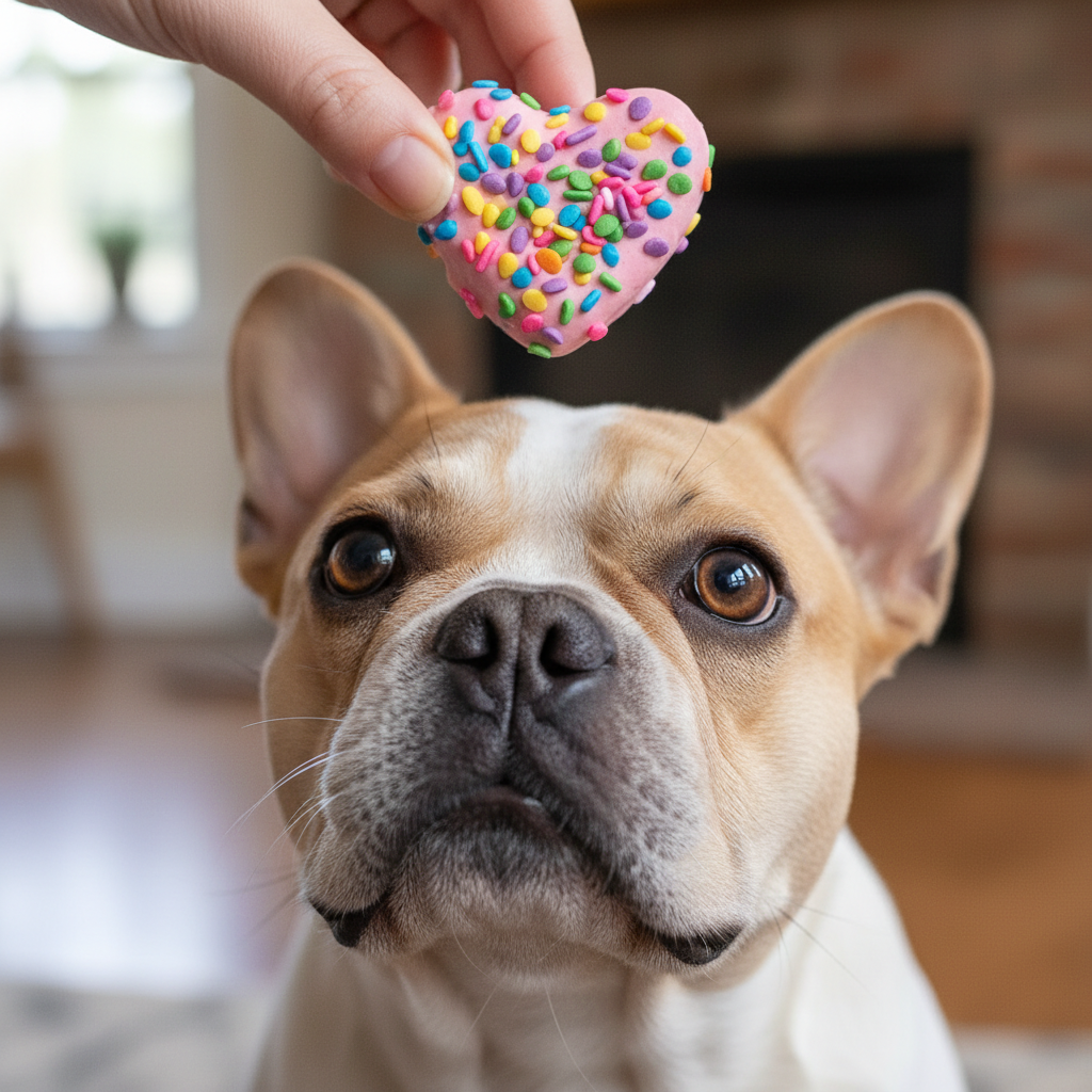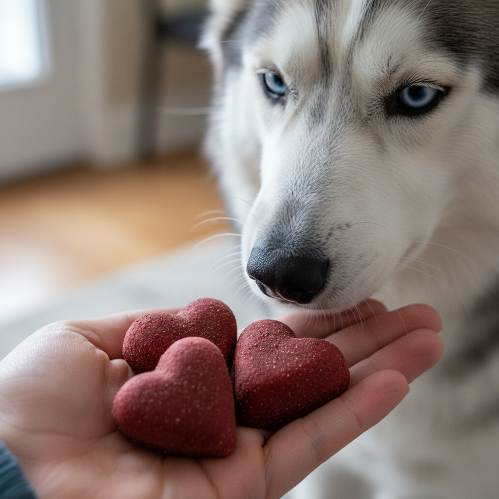 That’s a wonderful idea! Use a heart-shaped cookie cutter and dog-safe ingredients like whole wheat or oat flour, pumpkin puree, unsweetened applesauce, peanut butter (check for no xylitol!), and natural colorants like pureed strawberries or beets. There are many simple and healthy recipes online specifically for dogs.