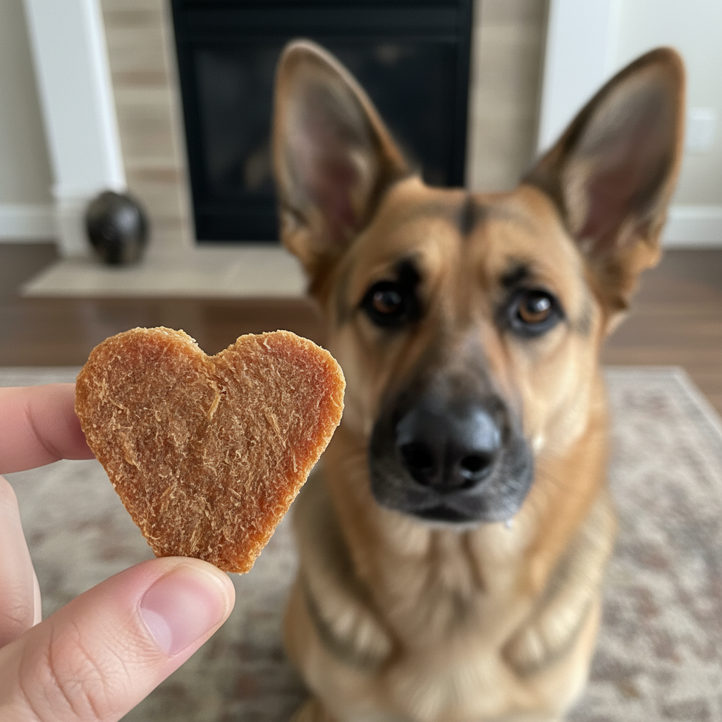 Ingredients & Sourcing: The only ingredient is USDA-grade chicken breast, sourced from farms in the USA. The chicken is simply sliced and dehydrated, which locks in the flavor and nutrients without the need for any preservatives, fillers, or flavorings. The heart shape is cut before the dehydration process.