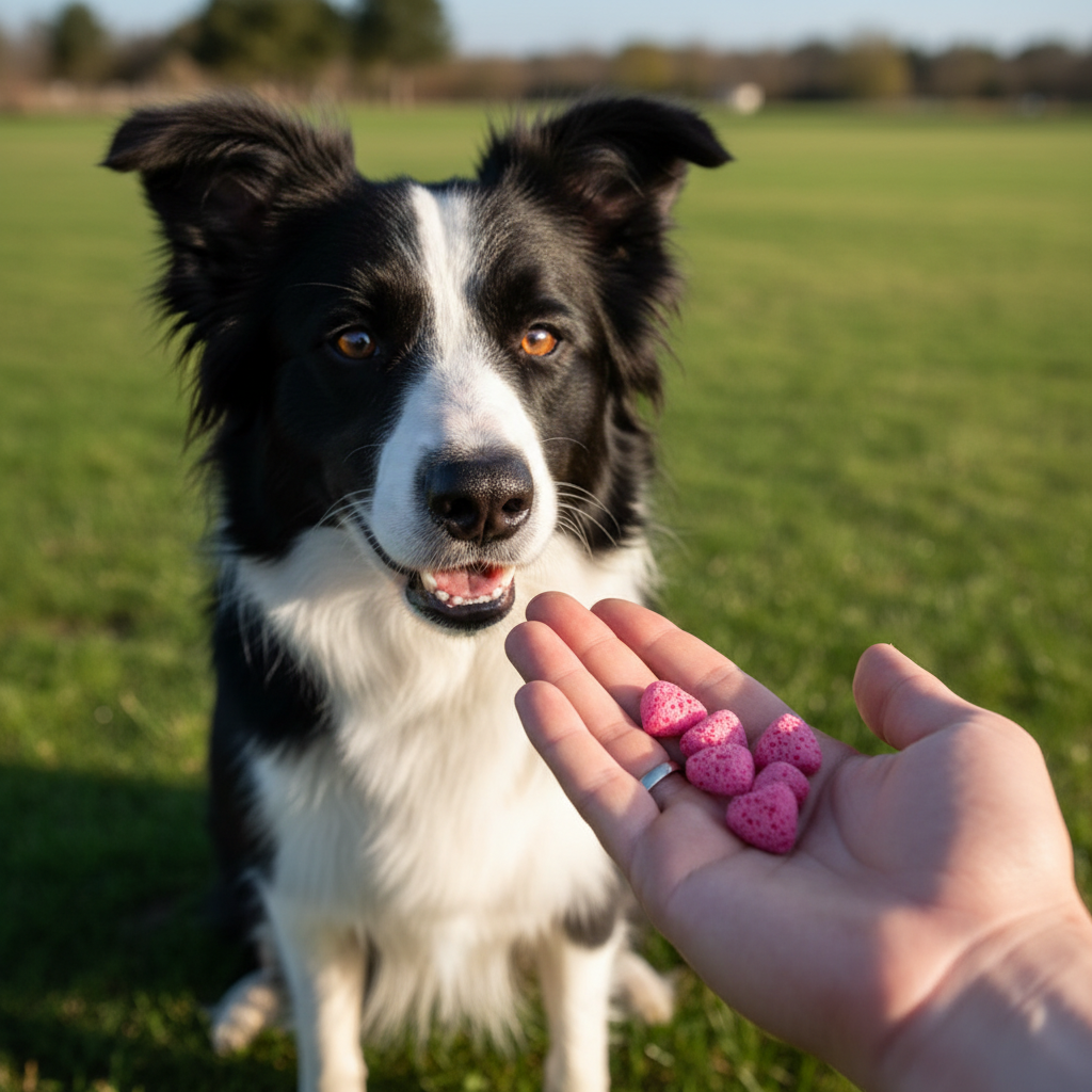 Not every pup is a fan of the crunch. For those who prefer a softer bite, the Berry Sweetheart Chews are a dream come true. These tender, heart-shaped morsels are perfect for senior dogs, small breeds, or any canine who just enjoys a chewier texture. Their vibrant pink color and fruity scent make them a festive delight.