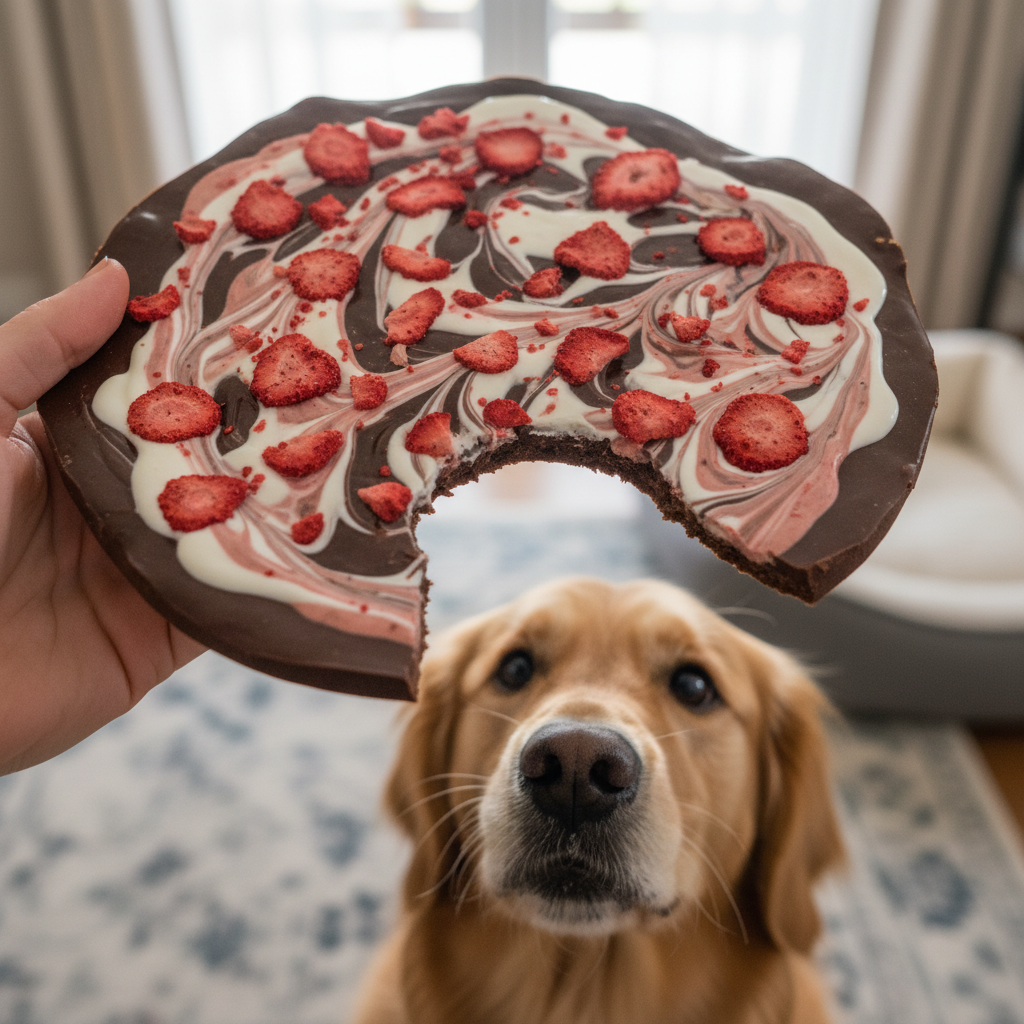 Ingredients & Sourcing: The base is primarily yogurt powder and carob powder, which gives it that rich, chocolatey look without any of the danger. It’s naturally sweetened and colored. The toppings are simple: freeze-dried strawberries for a pop of flavor and color, and shredded beets. It’s a fun, interactive treat made by a pet confectionery specialist.