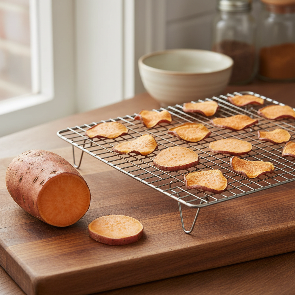 - Arrange the slices in a single layer on a wire rack placed on a baking sheet.