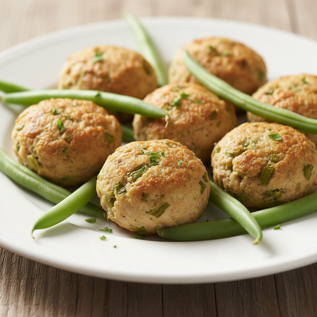 - In a bowl, mix the ground turkey, chopped green beans, brown rice flour, and egg until just combined. Don’t overmix.