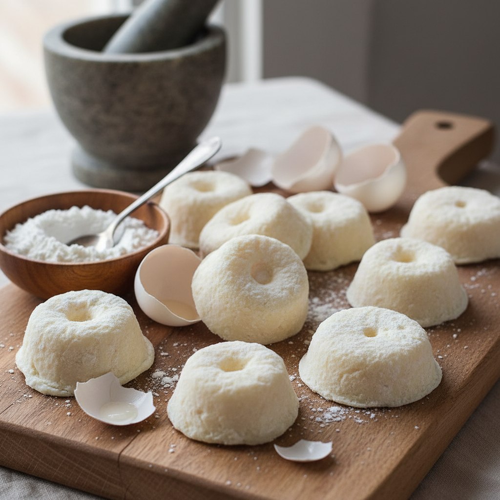 - To make eggshell powder: wash shells thoroughly, bake at 200°F for 10 mins to sterilize, then grind into a super-fine powder in a coffee grinder.