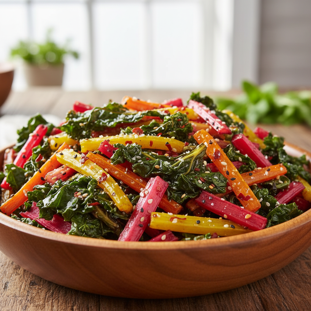 Look for bunches with crisp, vibrant leaves and firm stems. Avoid any leaves that are wilted, yellowing, or have brown spots. Rainbow chard is the most visually fun, but green or red chard works just as well. The fresher the chard, the better your chips will be!