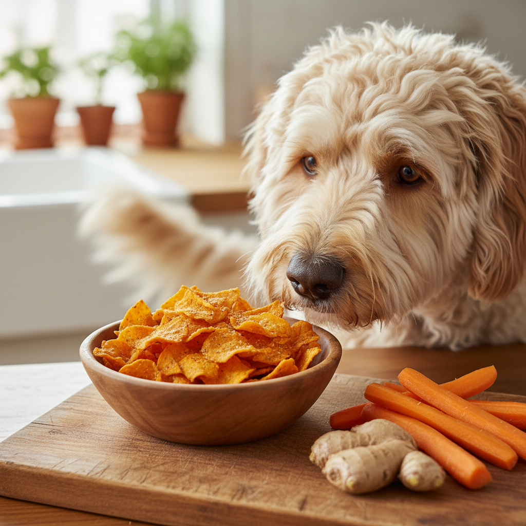 Golden Turmeric Chips Warm & Spicy 10 mins Senior dogs needing joint support