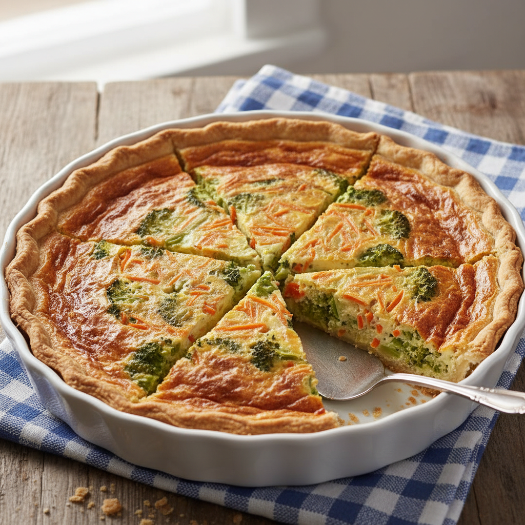 - Bake for 25-30 minutes, or until the center is set. Let it cool, then cut into wedges to serve.