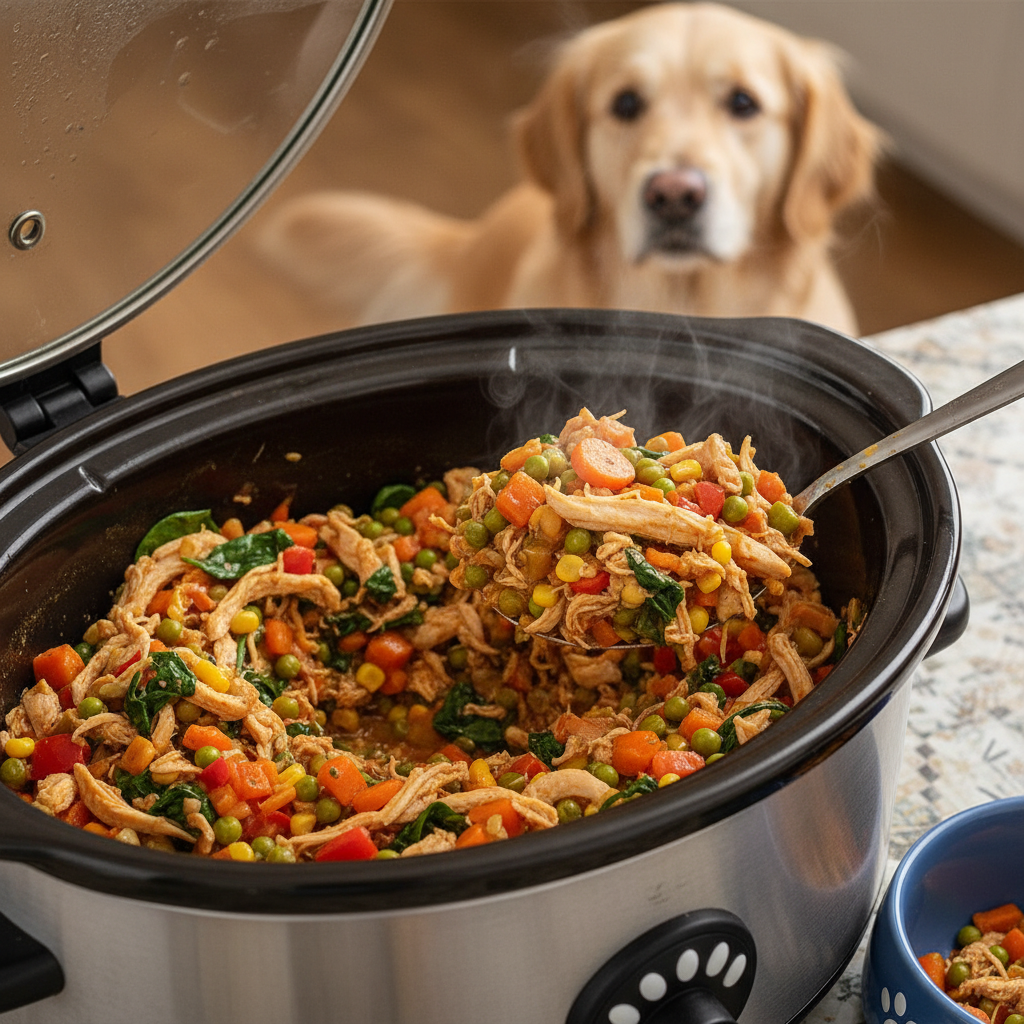 Let the slow cooker do the work! This recipe is incredibly easy and results in a soft, flavorful mash that’s easy for dogs of all ages to eat.