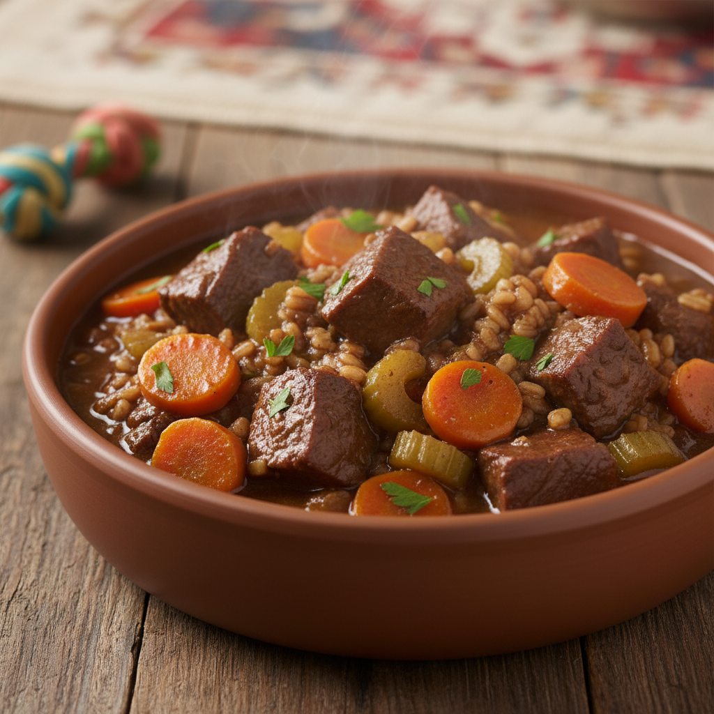 Barley is a healthy, fiber-rich grain that aids in digestion. This slow-simmered stew is a comforting and nutritious meal for any Goldendoodle.