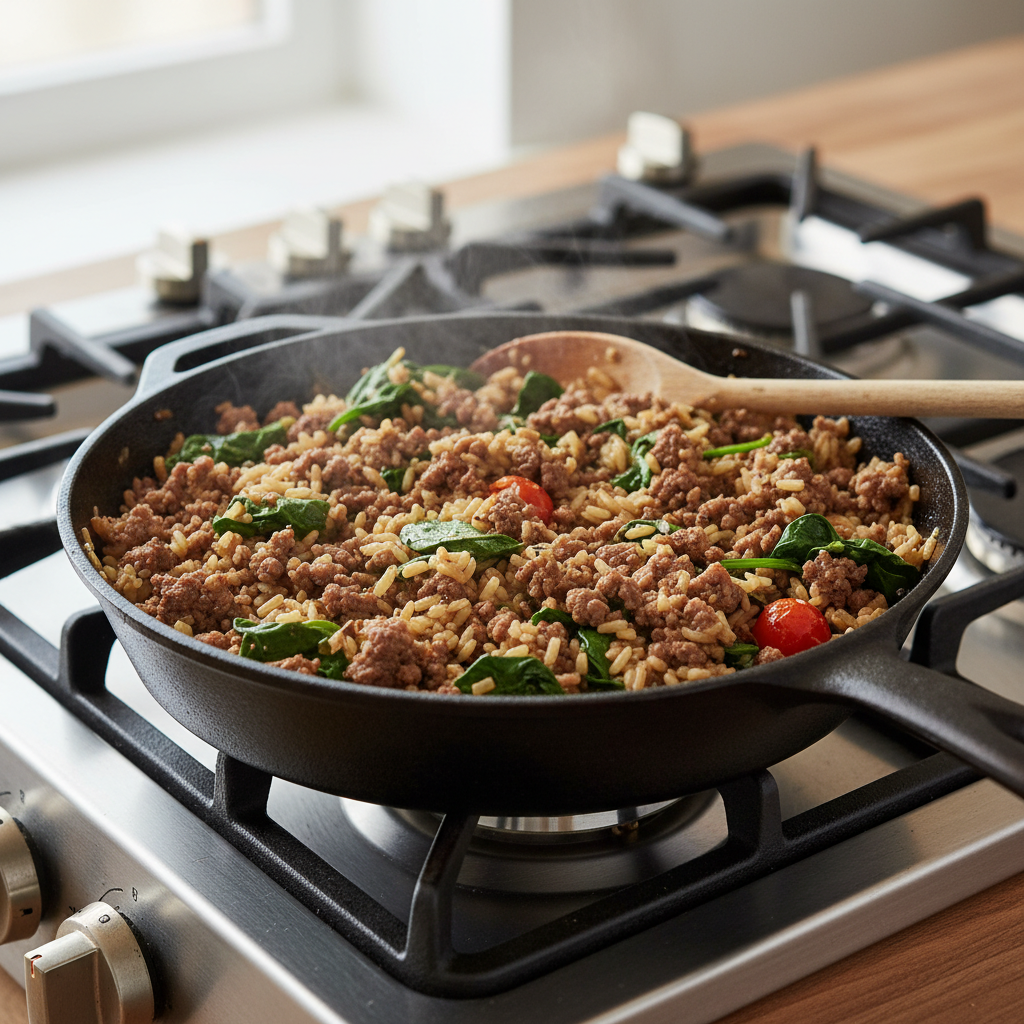 8. Ground Beef and Brown Rice Skillet