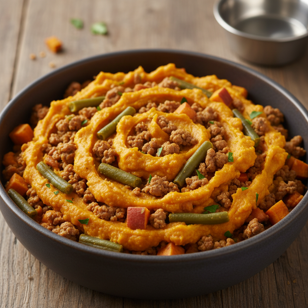 A hearty, veggie-packed stew that’s full of vitamins and fiber. The sweet potato provides complex carbohydrates for sustained energy, perfect for your playful pup.
