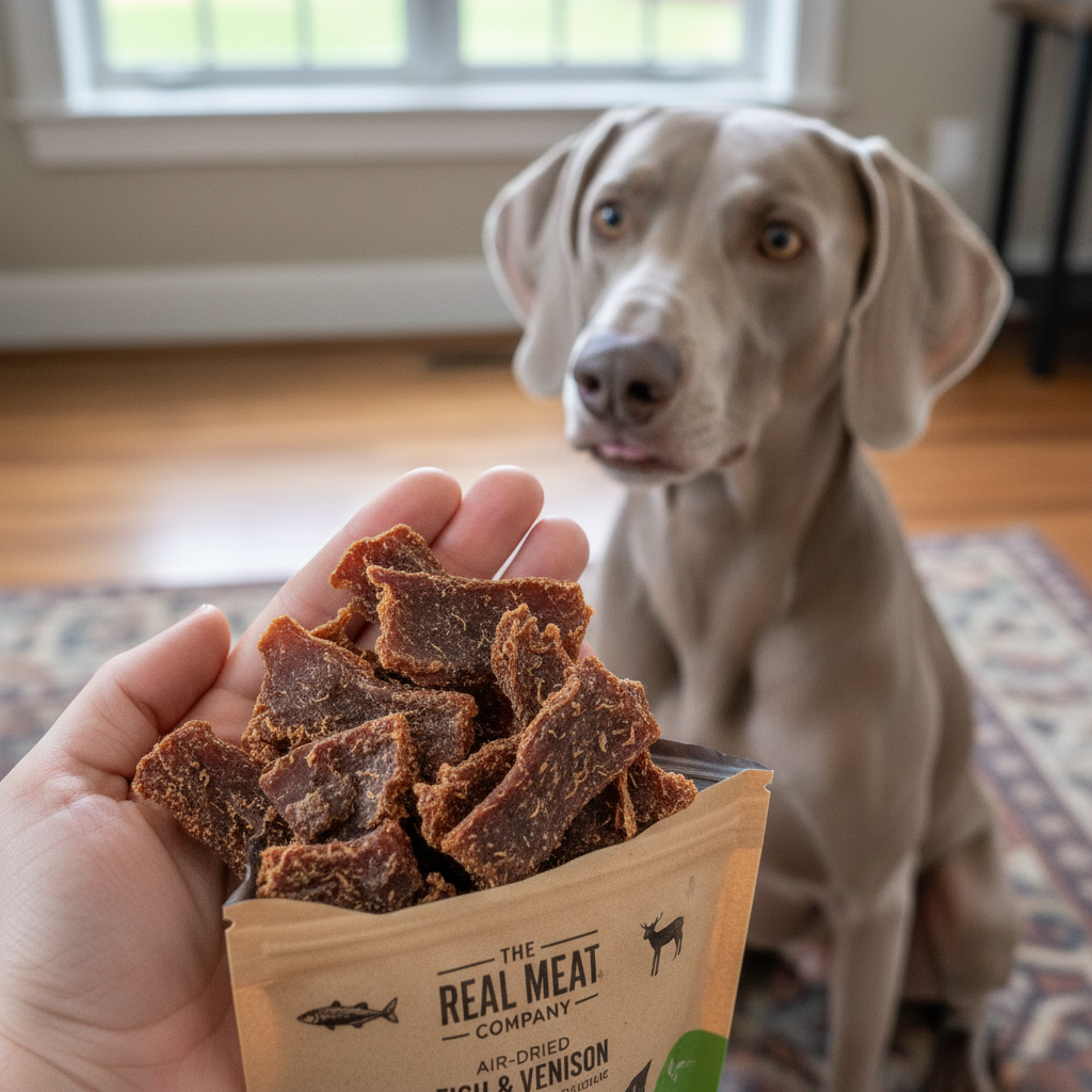Air-dried treats offer a unique texture that’s somewhere between a soft treat and a jerky. The Real Meat Company uses a gentle air-drying process to preserve the nutritional integrity of the ingredients. Their Fish & Venison recipe is a great liver-free option, combining two highly palatable proteins. These treats are soft enough to be broken up but firm enough that they don’t get mushy. They are made with over 95% meat and organs (no liver!), making them a nutrient-dense and high-value reward.