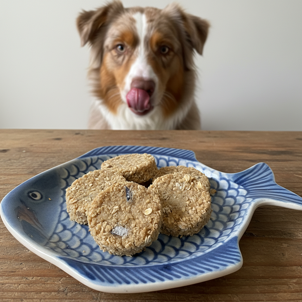 Lean into the theme! Use a cute, fish-shaped plate or garnish with a single dog-safe fish oil capsule for a funny, health-focused photo.