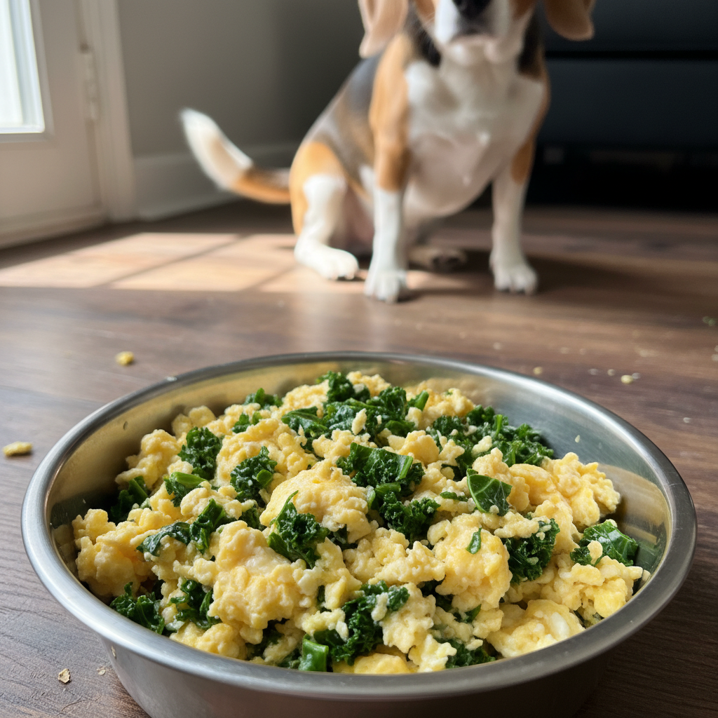 Eggs are a perfect source of protein. This super-fast recipe makes a fantastic breakfast or a light dinner for your canine companion.