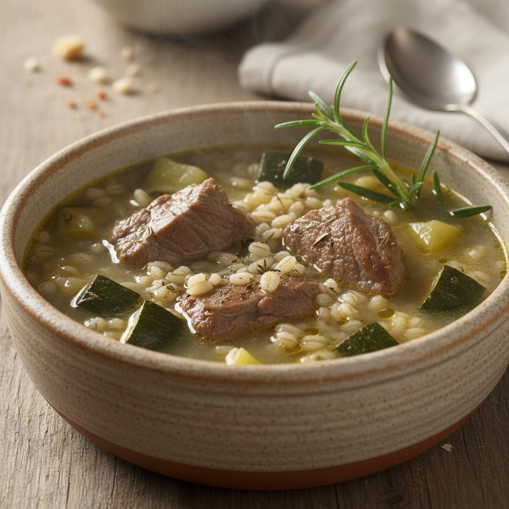 - Add the chopped zucchini to the stew and continue to simmer for another 10-15 minutes, or until the barley is tender and the lamb is cooked through.