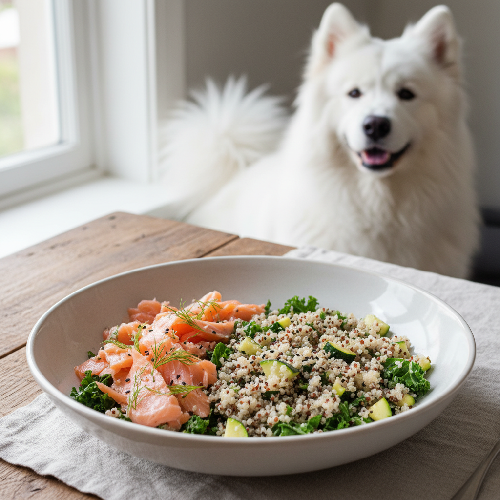 | Salmon & Quinoa Omega Boost | Salmon | Skin and coat health | 20 minutes |