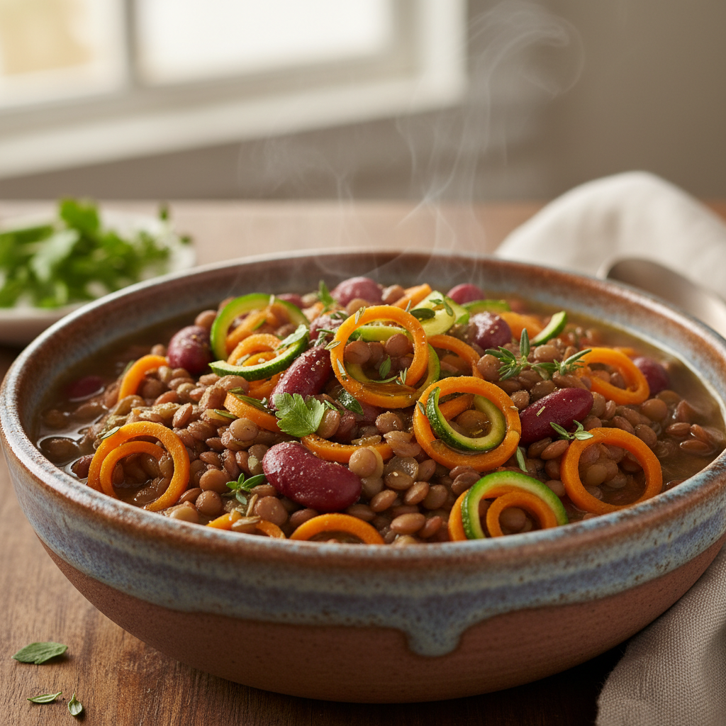 - Combine the rinsed lentils, shredded zucchini, carrots, celery, and rinsed kidney beans in the crockpot.
