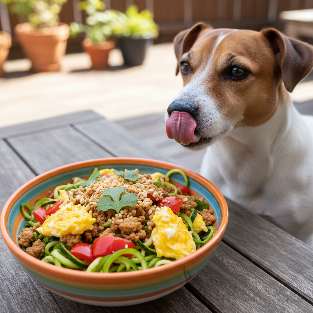 If you’re watching your dog’s weight, this low-carb, high-protein recipe is a fantastic choice. We swap out traditional noodles for spiralized zucchini (‘zoodles’) and use lean ground turkey. It’s a light yet satisfying meal that delivers all the flavor without the extra calories.