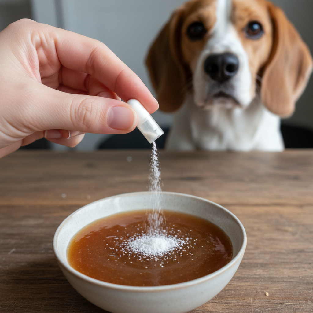 Real bone broth is packed with collagen, gelatin, and amino acids that are fantastic for joint health and gut lining repair. For a dog with an upset stomach who may not be eating much, this syrup provides not only the soothing effects of slippery elm but also vital hydration and easily absorbed nutrients.