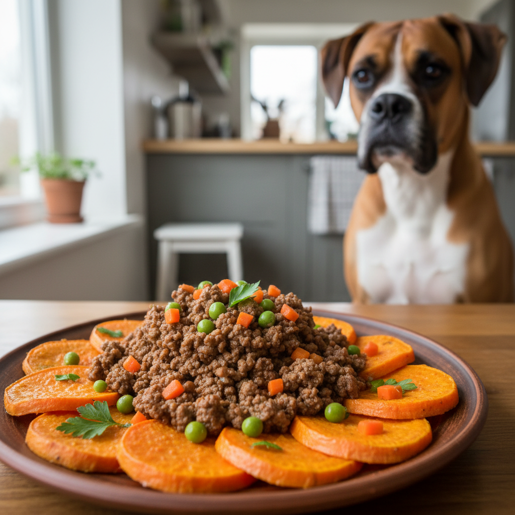 This recipe is packed with goodness. Sweet potatoes are a great source of dietary fiber, vitamin A, and vitamin C. Lean ground beef provides protein, while carrots and peas add extra nutrients. Using low-sodium broth ensures it’s safe for your pup’s system.