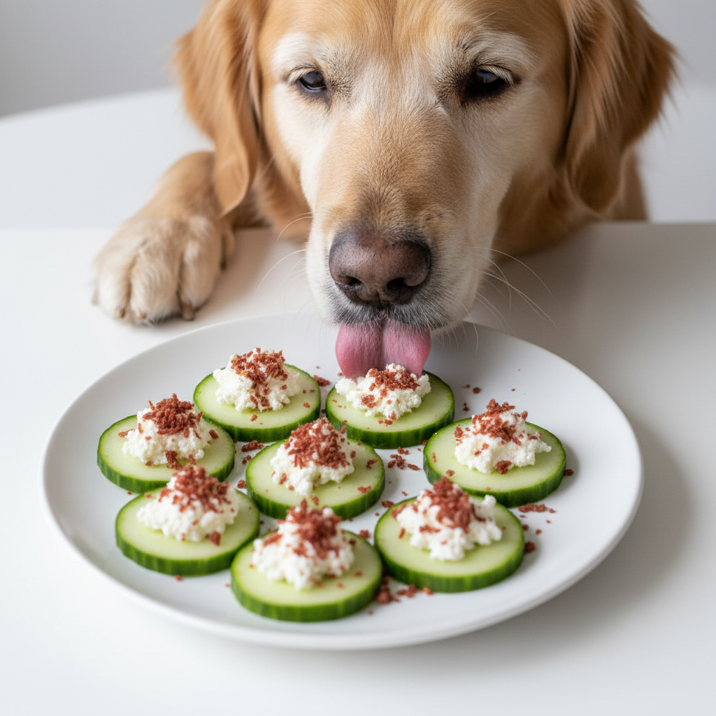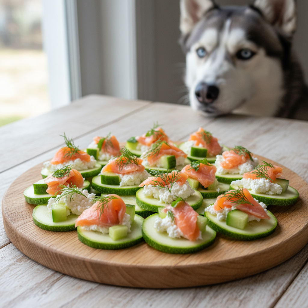 Salmon is a fantastic source of omega-3 fatty acids, which are great for skin, coat, and joint health. Zucchini and cucumber are hydrating, low-calorie veggies, and Greek yogurt/cottage cheese provides a safe, creamy element with protein and probiotics.