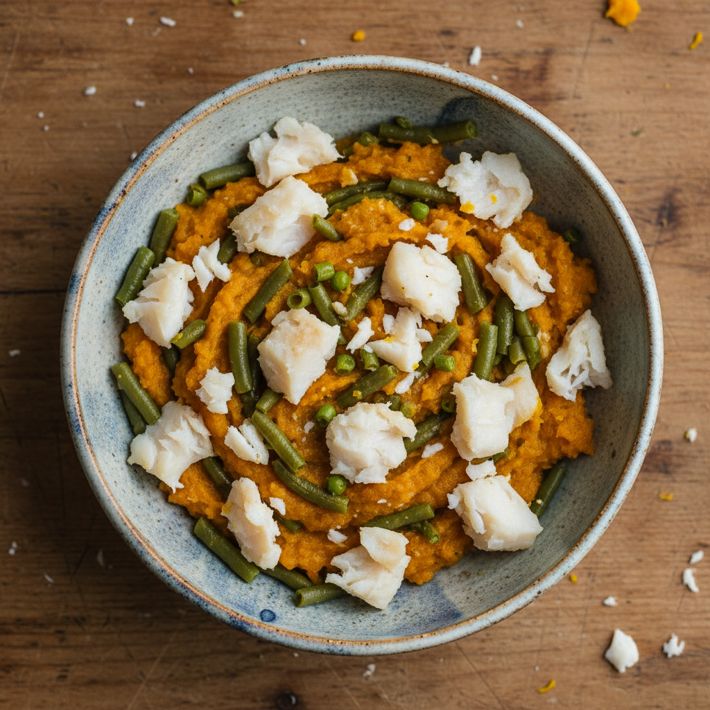| Flaky Cod & Pumpkin Purée | Cod Fillets | Pumpkin, Green Beans | Digestive Support |