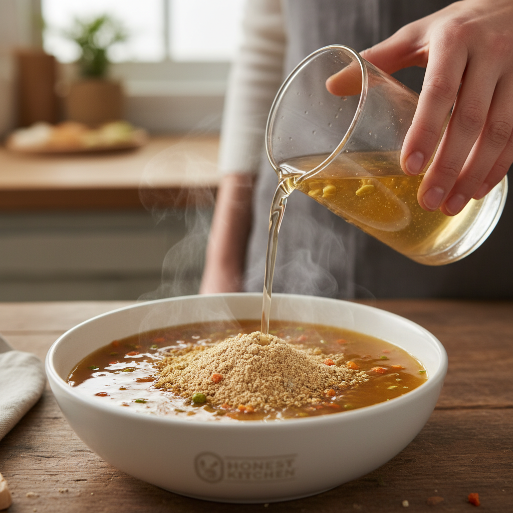 Ingredient Analysis: The star of this show is the turkey bone broth, slow-simmered to extract maximum flavor and nutrients like collagen, glucosamine, and chondroitin, which are fantastic for joint health. It’s combined with real turkey, carrots, and parsley. What’s truly impressive is what’s not on the list: no fillers, no gums, no carrageenan, no artificial preservatives, and no ingredients from China. It’s a clean, simple, and powerful formula. The dehydrated format is also a plus—you just add warm water to create a rich, savory gravy that smells just like homemade soup.